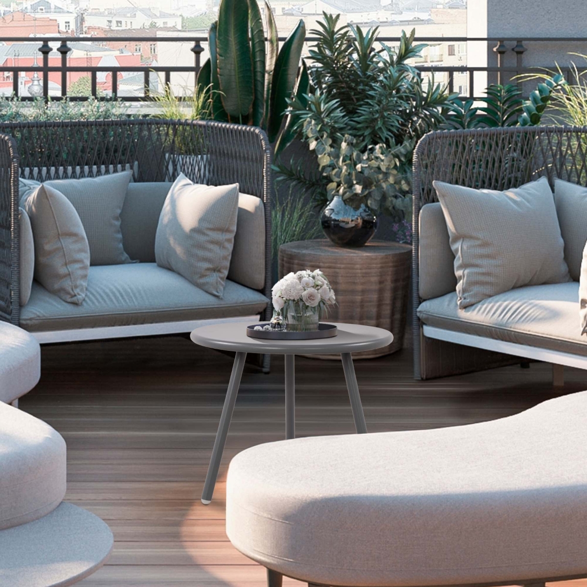 Univerzálny stolík z recyklovaných plastov odolný voči poveternostným vplyvom. Ideálny do interiéru aj exteriéru - na terasu, balkón či do záhrady. Kovové nohy s antikoróznou úpravou zaručujú stabilitu a dlhú životnosť.