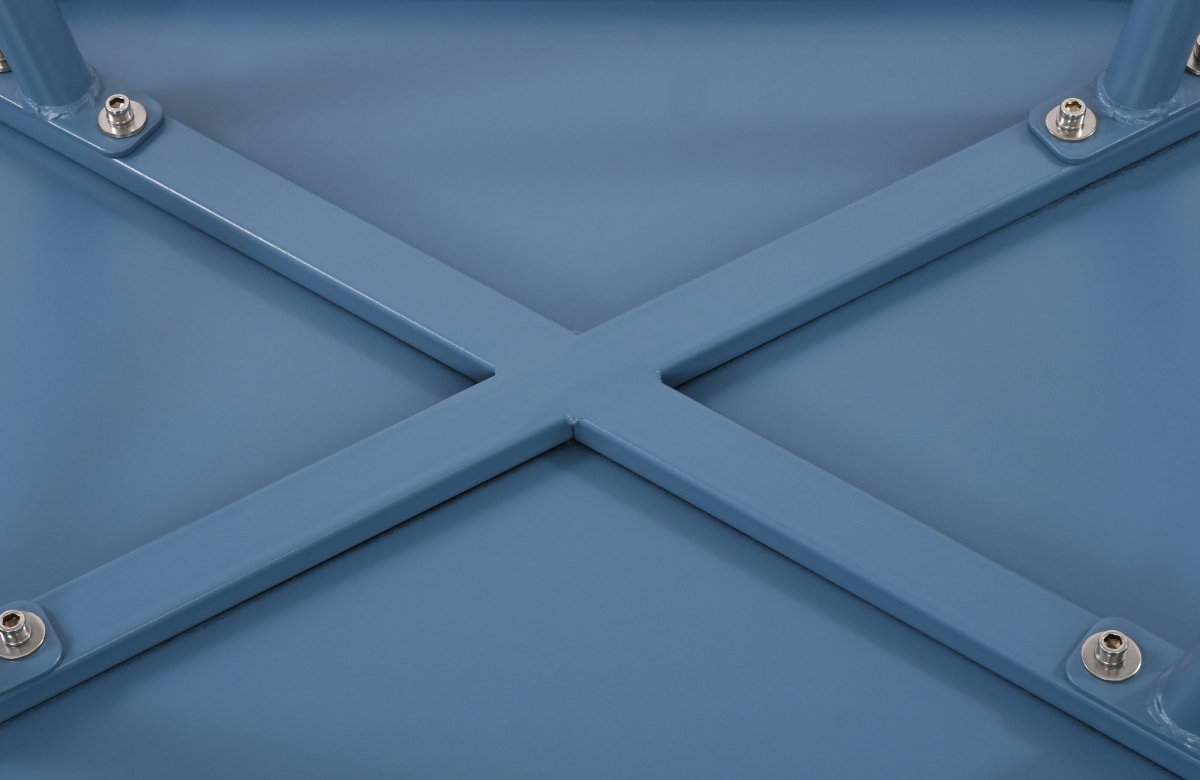 Nohy stola sú vyrobené z kovu, ktorý je chránený proti korózii pomocou procesu e-coating, a preto je odolný voči hrdzi.