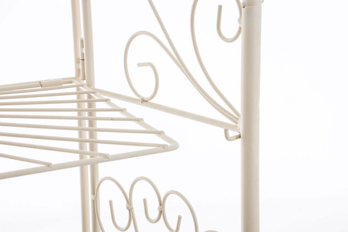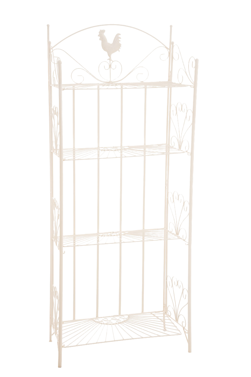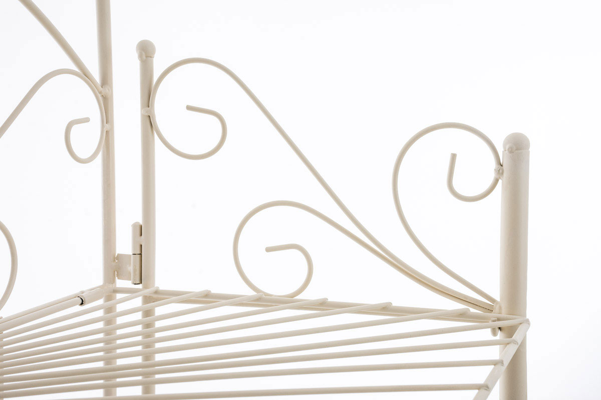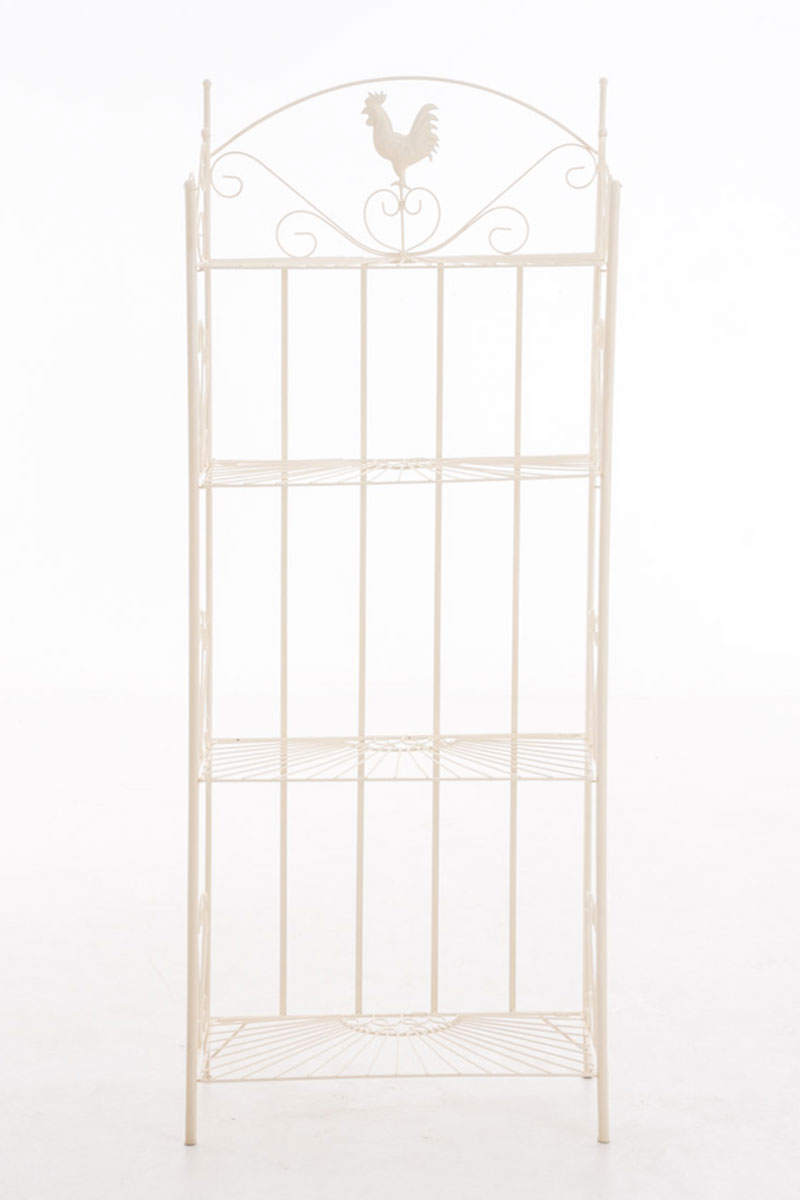 Robustná železná polica regál vo vidieckom štýle s kvalitným práškovým nástrekom. Stabilná konštrukcia s 4 policami a dekoratívnymi prvkami pre starobylý vzhľad. Rozmery: 61,5 x 33 x 153 cm, ľahko skladateľná.