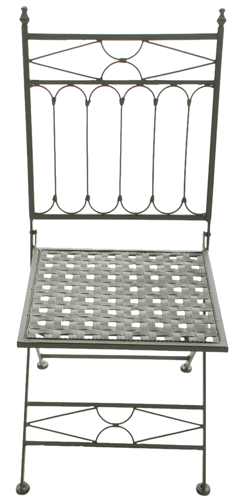 Krásna nostalgická záhradná stolička z ručne kovaného železa s antickou patinou. Elegantný dizajn dodá vašej terase alebo záhrade nádych minulosti. Kvalitné spracovanie a skladací dizajn pre ľahké uskladnenie.