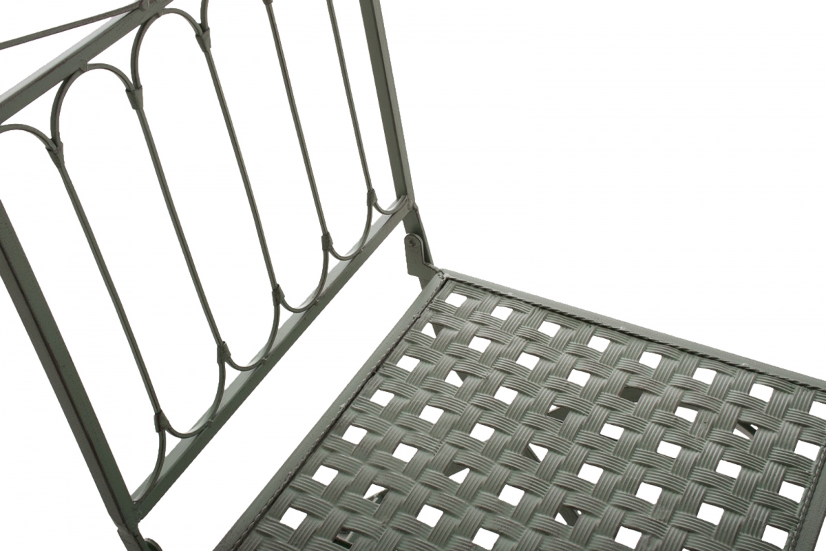 Výrobok je ručne vyrobený zo železa s povrchom v starožitnej patine. Stolička sa dokonale hodí k našej ponuke stolov.