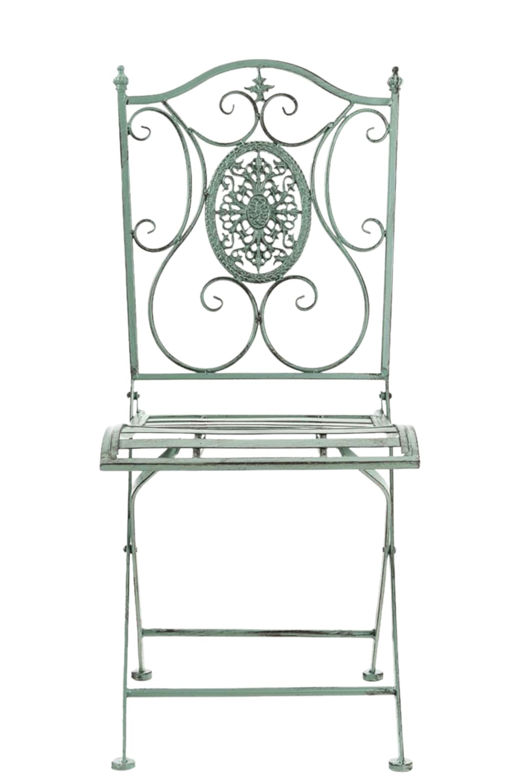 Krásna nostalgická záhradná stolička z ručne vyrobeného železa s patinou. Elegantný dizajn s ozdobami dodá vašej terase alebo záhrade jedinečné kúzlo minulosti. Ideálna k našim záhradným stolom.