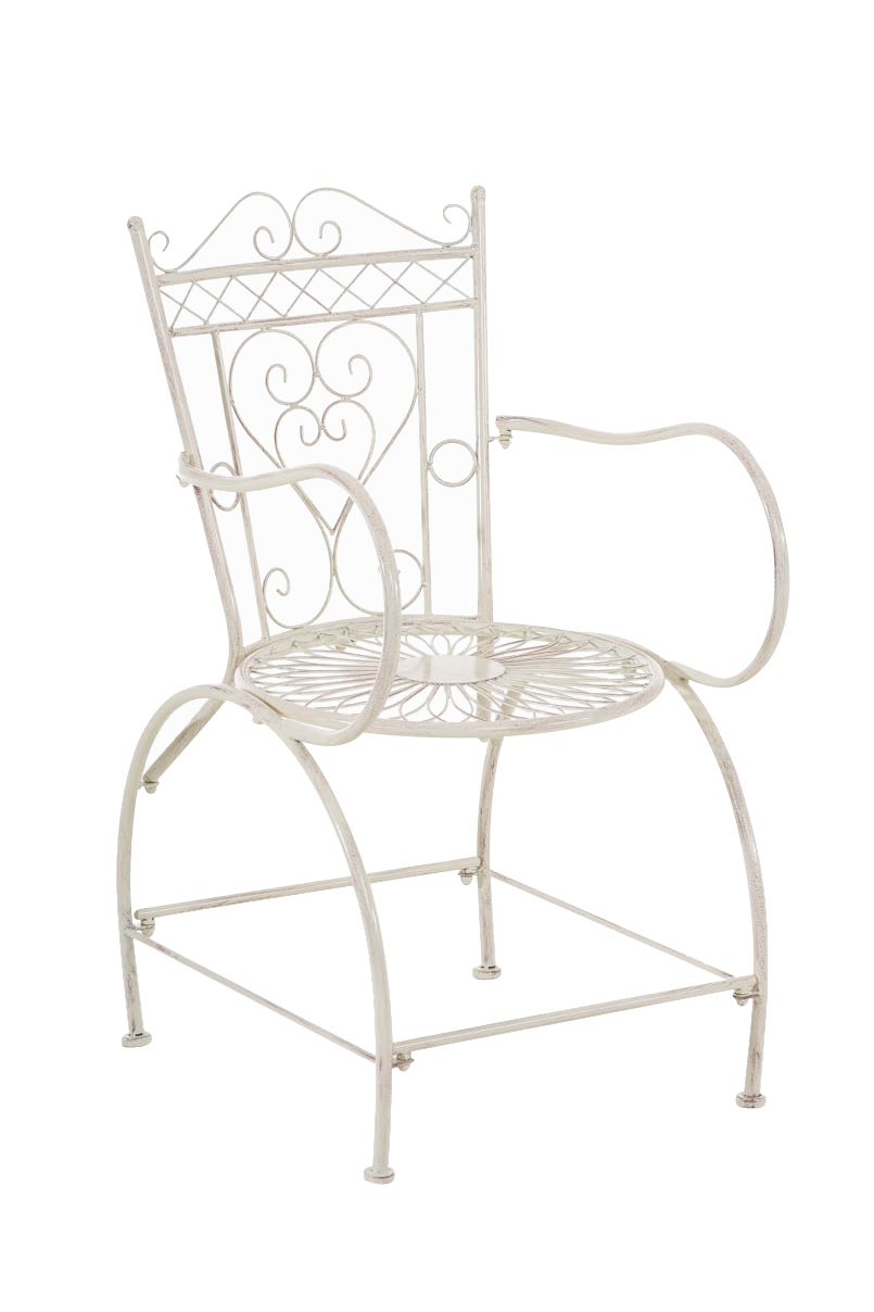 Nostalgická záhradná stolička s elegantným dizajnom a starožitnou patinou. Ručne vyrobená zo železa, upúta na každej terase alebo v záhrade. Kvalitné spracovanie s rozmermi 88 x 48 x 60 cm a výškou sedadla 44 cm.