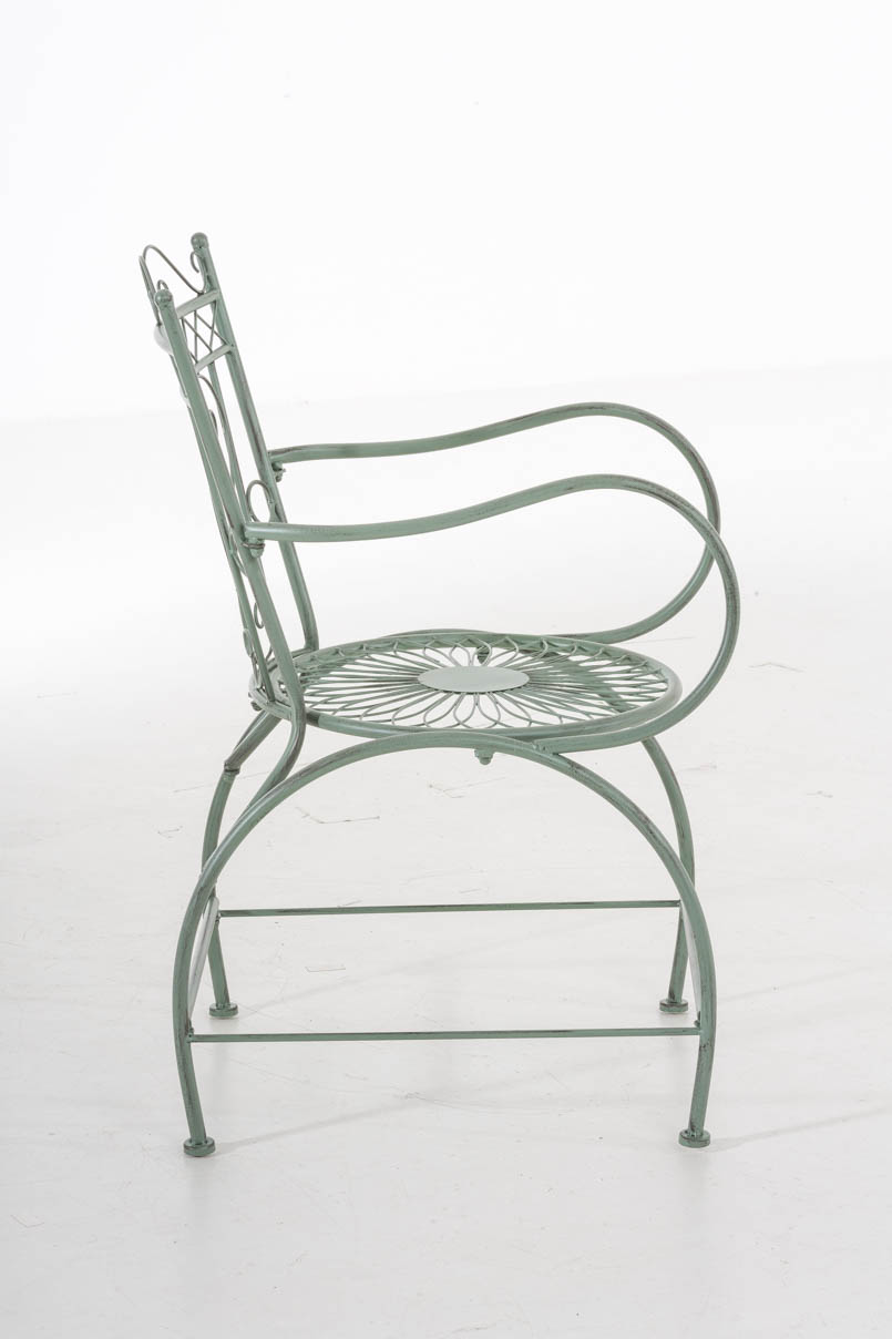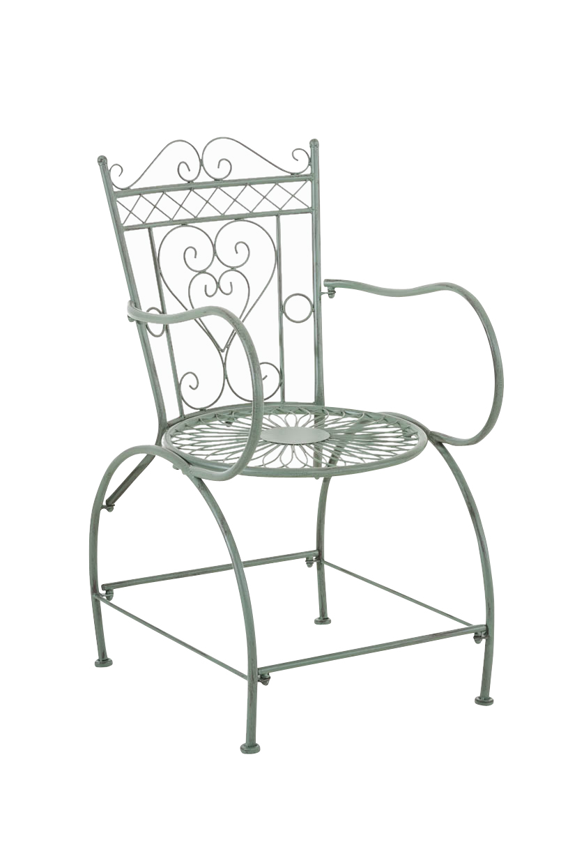 Nostalgická záhradná stolička s elegantným dizajnom a starožitnou patinou. Ručne vyrobená zo železa, upúta na každej terase alebo v záhrade. Kvalitné spracovanie s rozmermi 88 x 48 x 60 cm a výškou sedadla 44 cm.