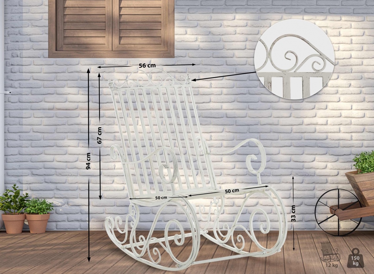 Pohodlné a štýlové hojdacie kreslo s vysokými podrúčkami a operadlom pre príjemné sedenie. Ponúka jemný tvar, pekné detaily a pevnú konštrukciu s nosnosťou až 130 kg, rozmery 94 x 56 x 90 cm.