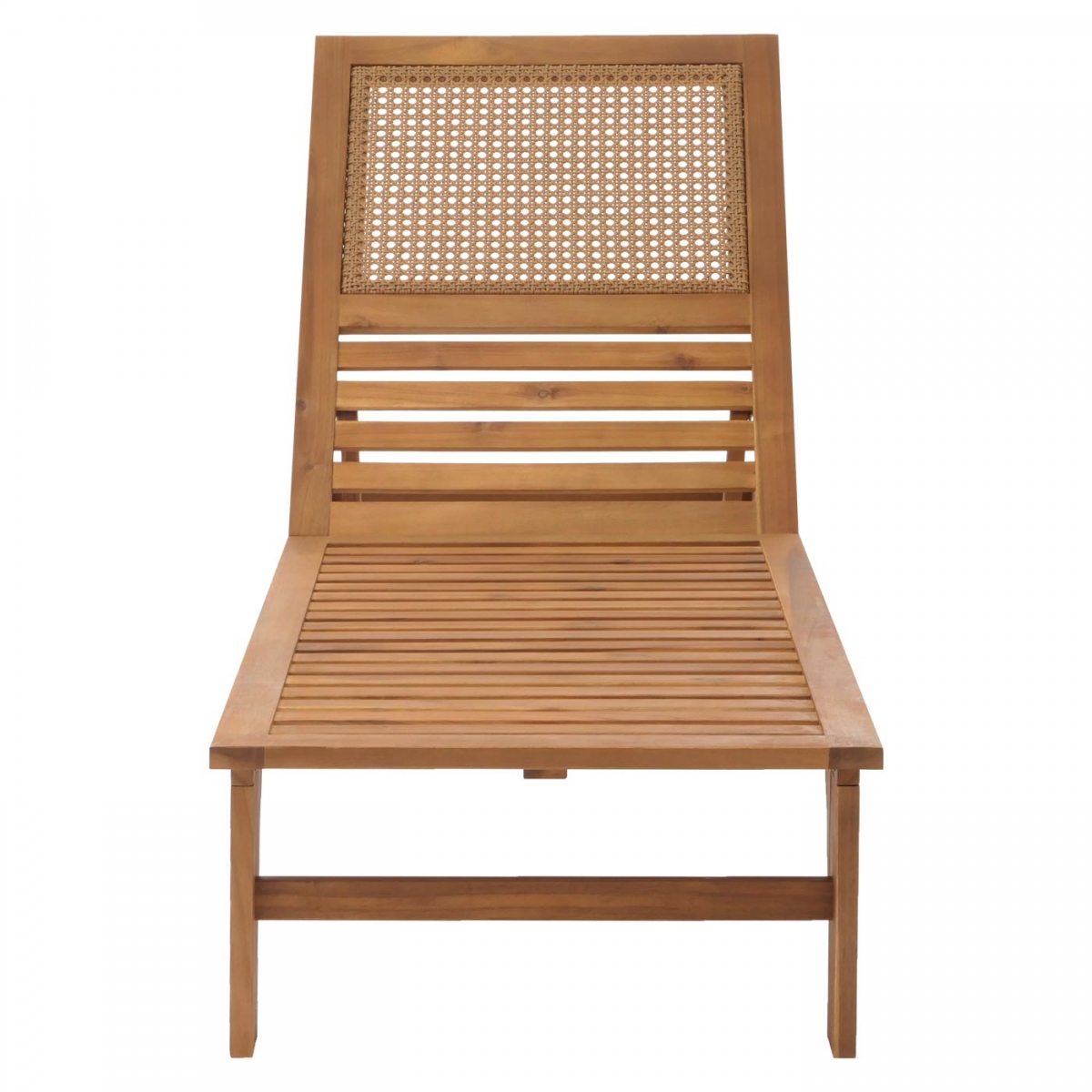 - Naša slnečná lehátka sa vyznačuje dekoratívnym poly-ratanovým pletením na operadle a 4-násobným nastavením výšky pre individuálne pohodlie. Olejované akáciové drevo zabezpečuje dlhú životnosť, zatiaľ čo dve kolesá umožňujú jednoduché presúvanie.