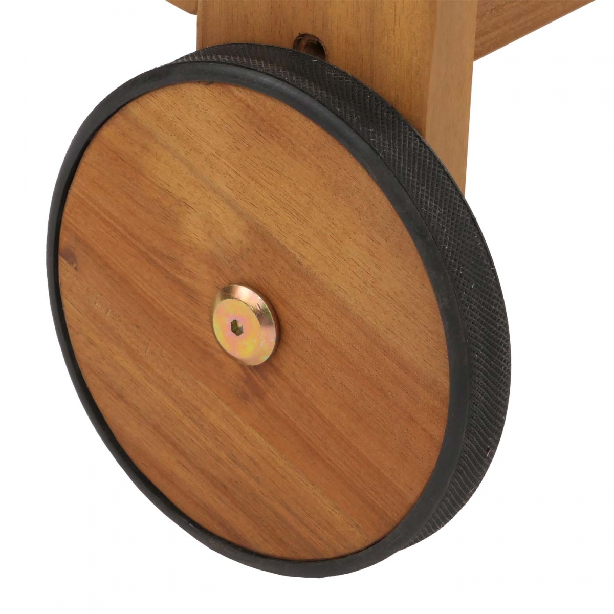 * Poznámka: Záhradný nábytok z akáciového dreva sa olejuje, aby sa chránil pred vlhkosťou a UV žiarením a aby sa zachovala prirodzená farba, štruktúra a krása dreva. Olej preniká hlboko do drevených pórov, posilňuje drevené vlákna a zabraňuje prasklinám a krehkosti. To prispieva k dlhodobosti a atraktivite nábytku. Aby ste optimálne udržali svoj akáciový záhradný nábytok, naneste raz ročne špeciálny olej na drevo. Predtým dôkladne vyčistite nábytok a nechajte ho úplne vyschnúť. Olej naneste rovnomerne mäkkou handričkou alebo štetcom a nechajte ho dobre vsiaknuť. Po niekoľkých hodinách odstráňte prebytočný olej čistou handričkou.