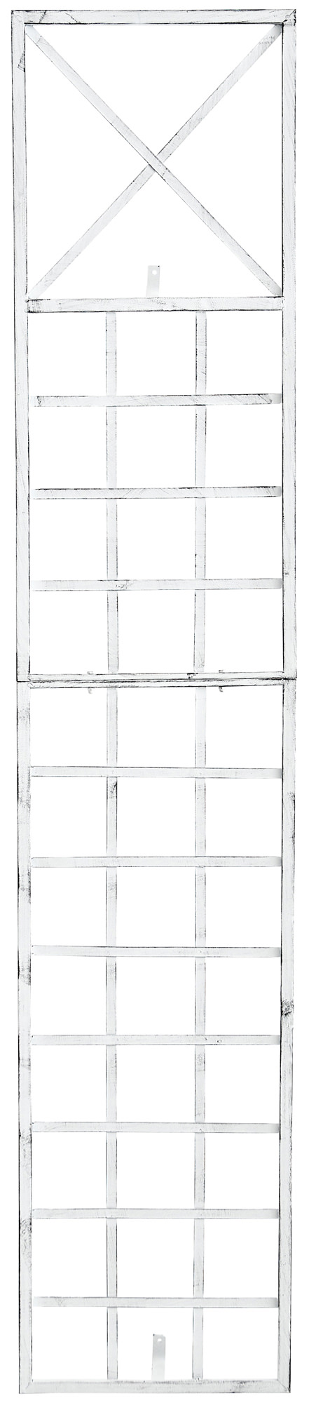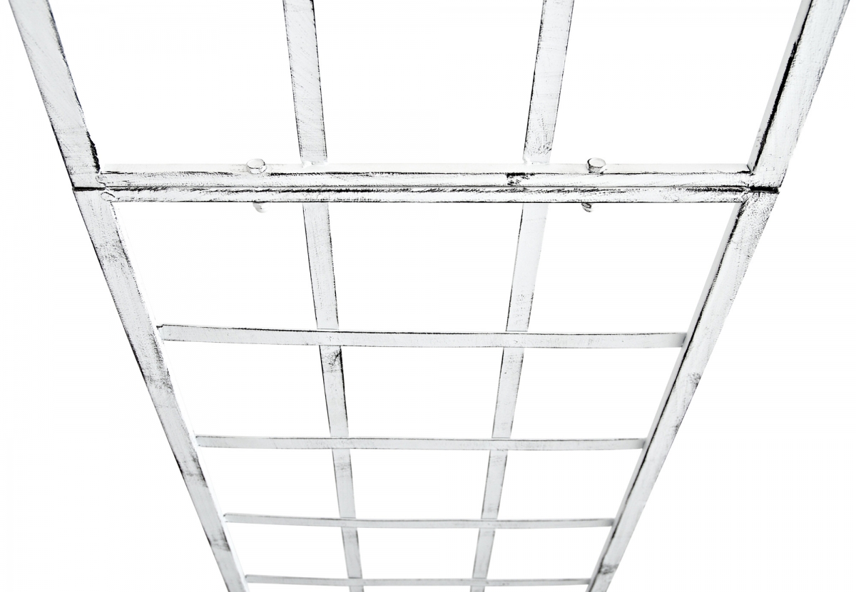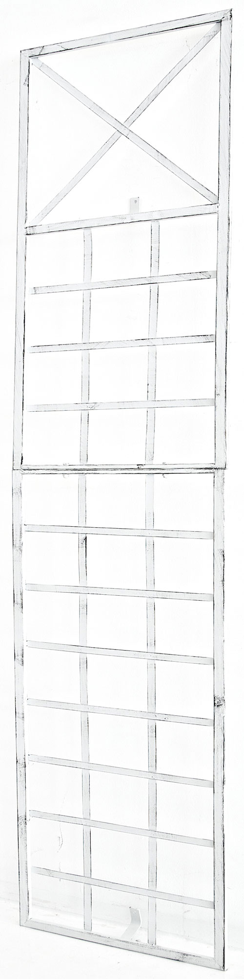 Krásna dekorácia na stenu - kovová mriežka pre popínavé rastliny. Ručne vyrobená zo železa s antickou patinou, 40x198 cm. Ideálne riešenie pre milovníkov vertikálneho záhradníctva a štýlového interiéru.