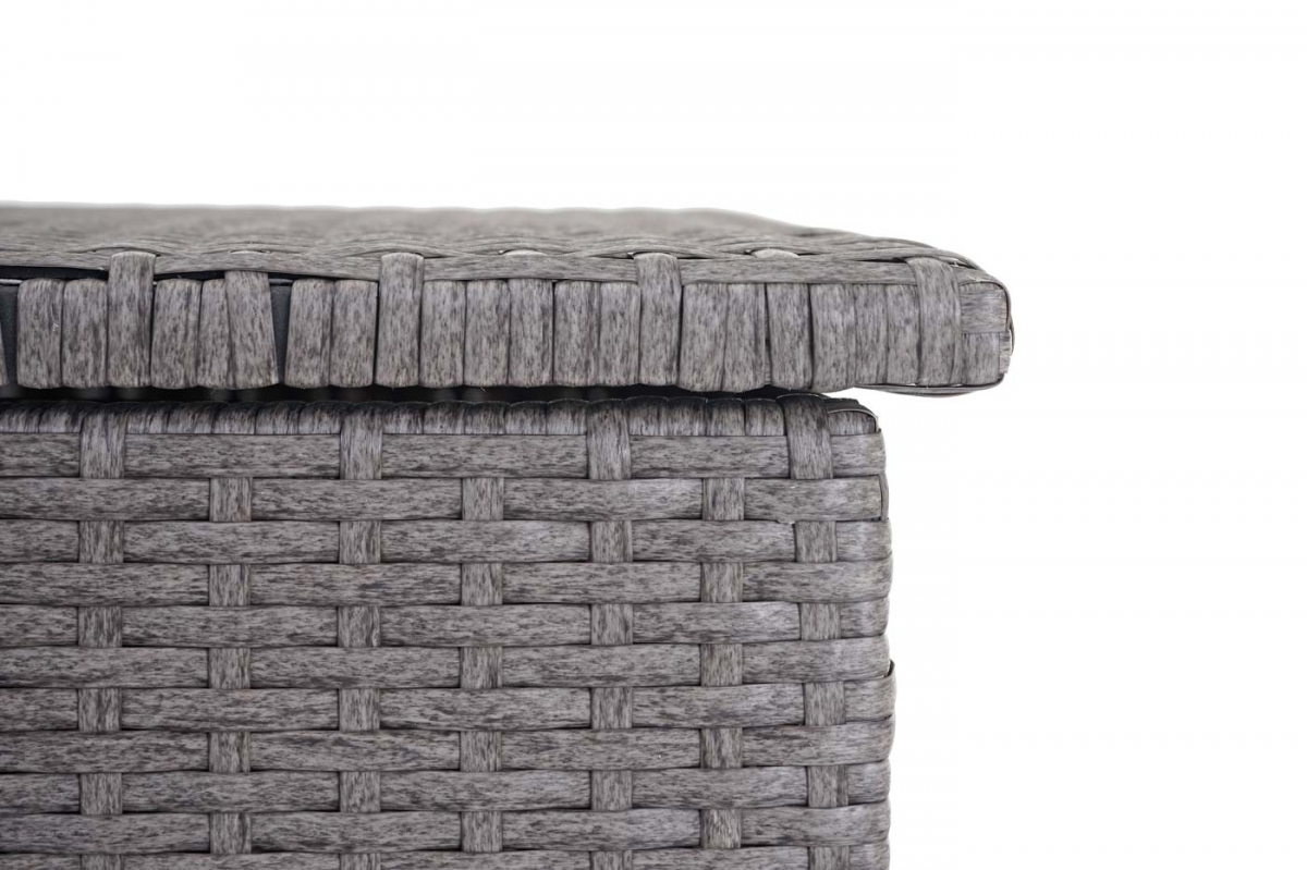 Elegantná poly-ratanová truhla s objemom 320 l ponúka všestranné využitie ako úložný priestor alebo bufetový stôl. Odolná voči UV žiareniu a poveternostným vplyvom, s nosnosťou až 40 kg, je ideálna pre záhradu. BSCI certifikovaná pre sociálne zodpovedné obstarávanie.