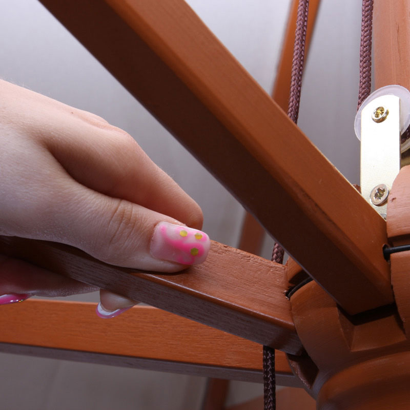 Existuje riziko, že drevené vzpery sa zaklinia a ľahko sa zlomia. V tomto prípade pred otvorením siahnite pod dáždnik a správne usporiadajte drevené vzpery. Dáždnik sa potom dá jednoducho rozložiť.