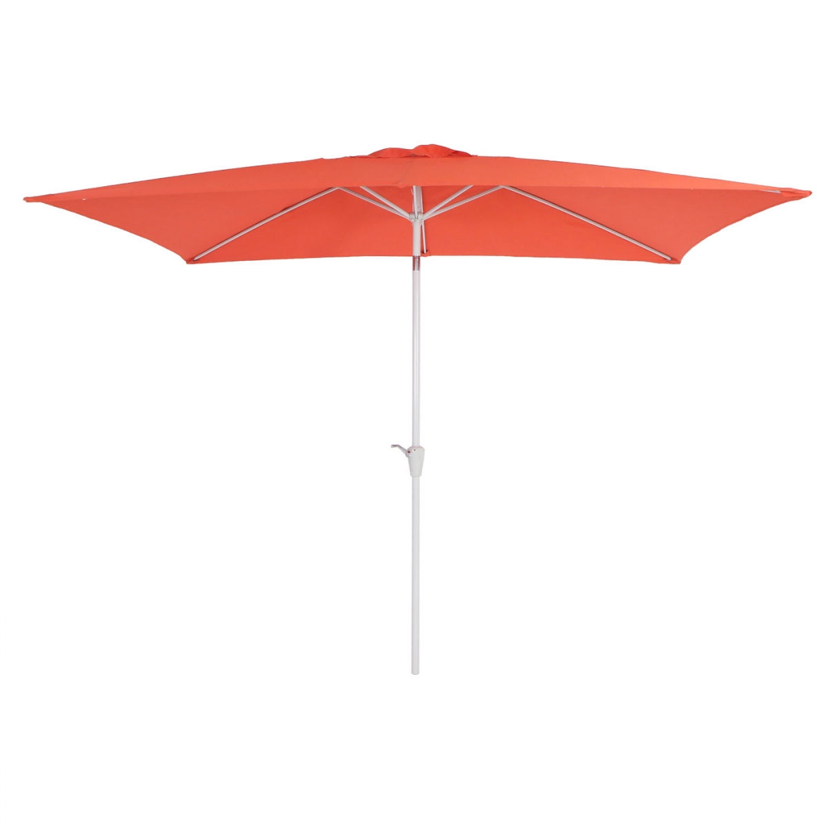 Elegantný slnečník s UV ochranou 50+ pre dokonalé tienenie na záhrade či balkóne. Hliníkový rám, delená tyč pre ľahkú prepravu a skladovateľnosť, jednoduchá obsluha kľukou. Rozmery 295x192x256 cm, ideálny pre horúce letné dni.