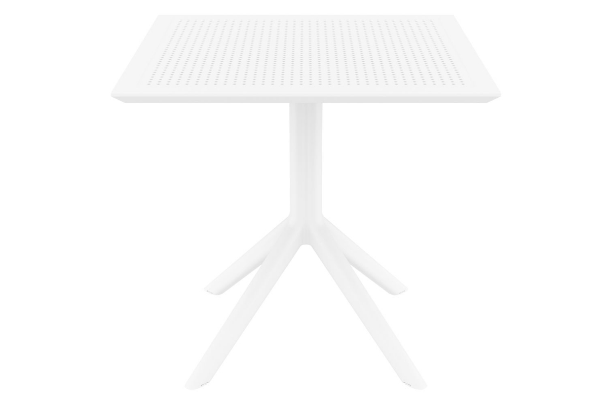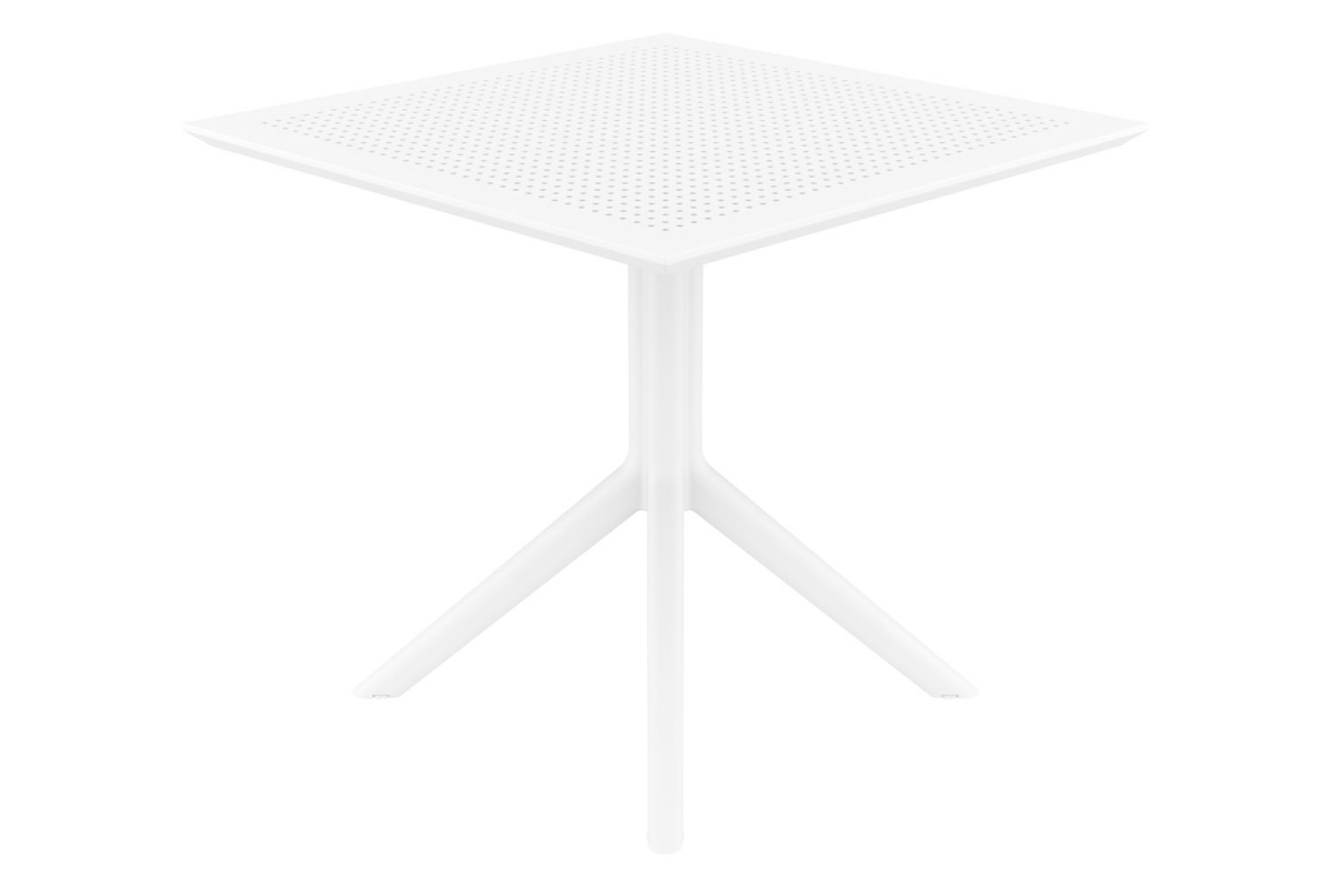 Moderný plastový stôl z polypropylénu, ideálny na použitie doma i vonku. Odolný voči hrdzi, vode a UV žiareniu, ľahko sa čistí a je odolný proti poškriabaniu. Rozmery: 80x80x74 cm, hmotnosť 14 kg.