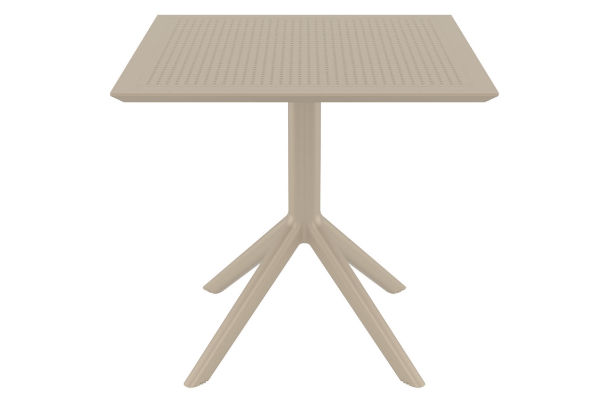 Moderný plastový stôl z polypropylénu, ideálny na použitie doma i vonku. Odolný voči hrdzi, vode a UV žiareniu, ľahko sa čistí a je odolný proti poškriabaniu. Rozmery: 80x80x74 cm, hmotnosť 14 kg.