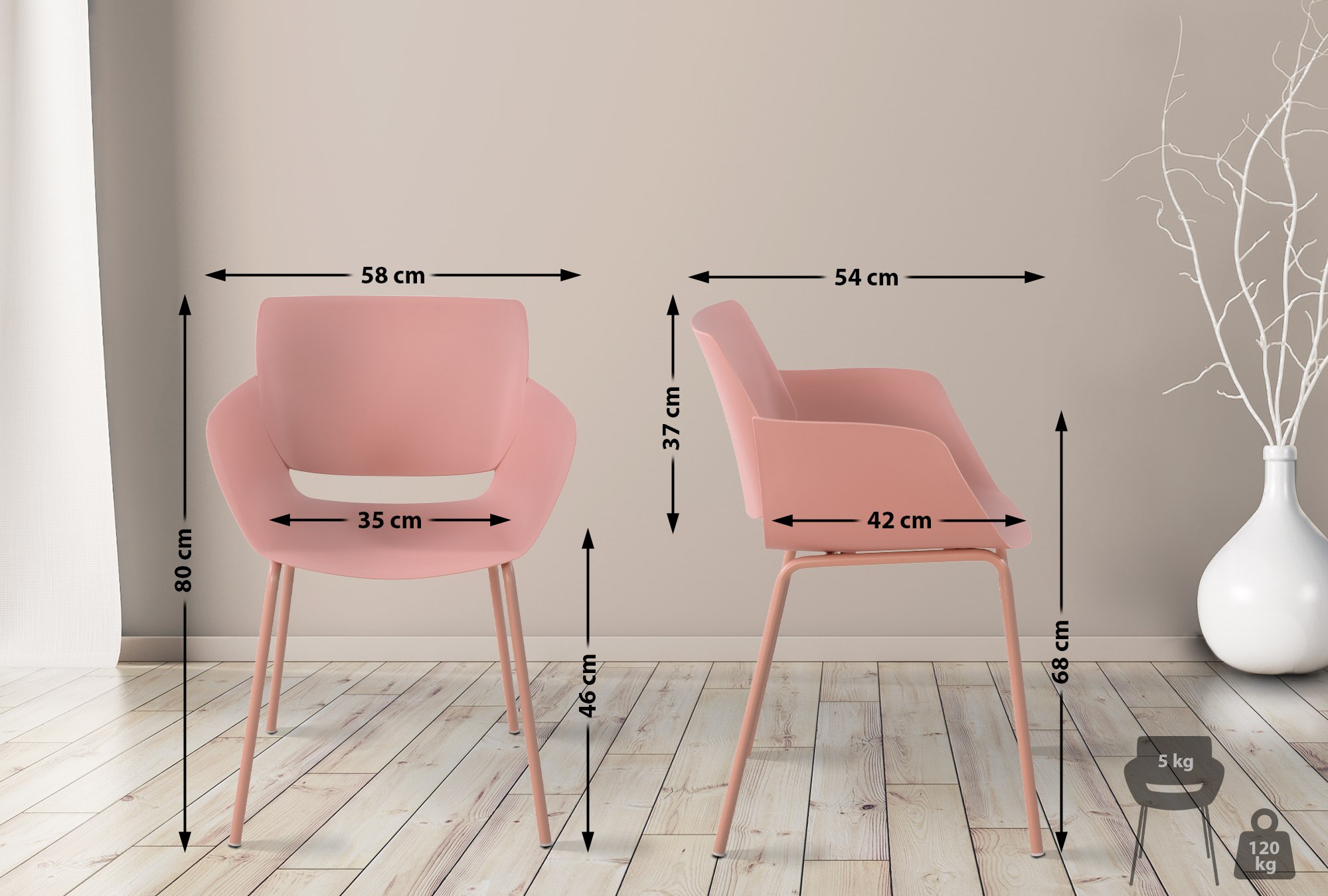 Vďaka tomu je stolička skvelou voľbou ako záhradná stolička, na terasu a balkón, ale je ideálna aj ako kuchynská stolička, jedálenská stolička, bistro stolička a na konferencie.