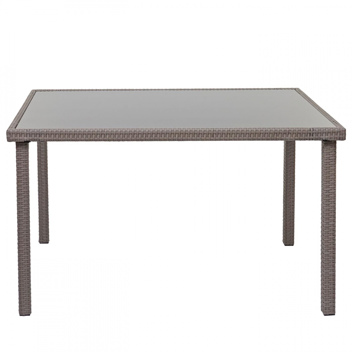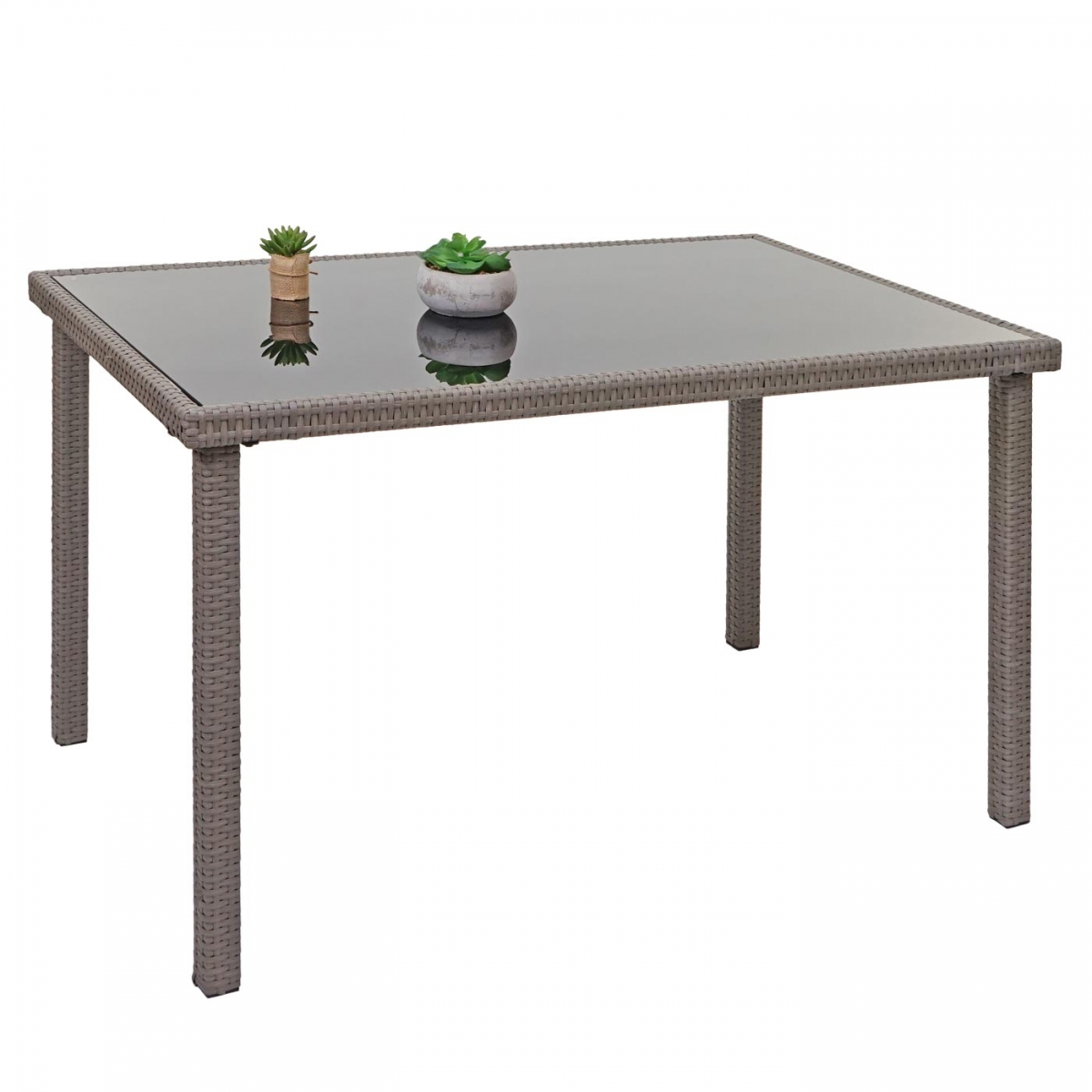 Kombinácia polyratanu a skla dodáva balkónovému stolíku elegantný vzhľad. Tento moderný polyratanový jedálenský stôl je možné podľa želania kombinovať s iným záhradným nábytkom.